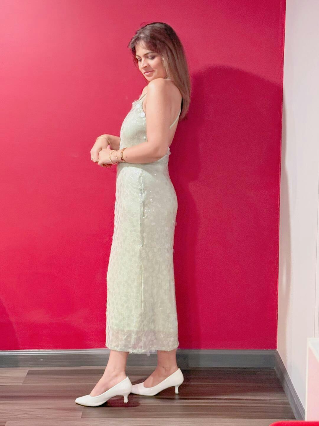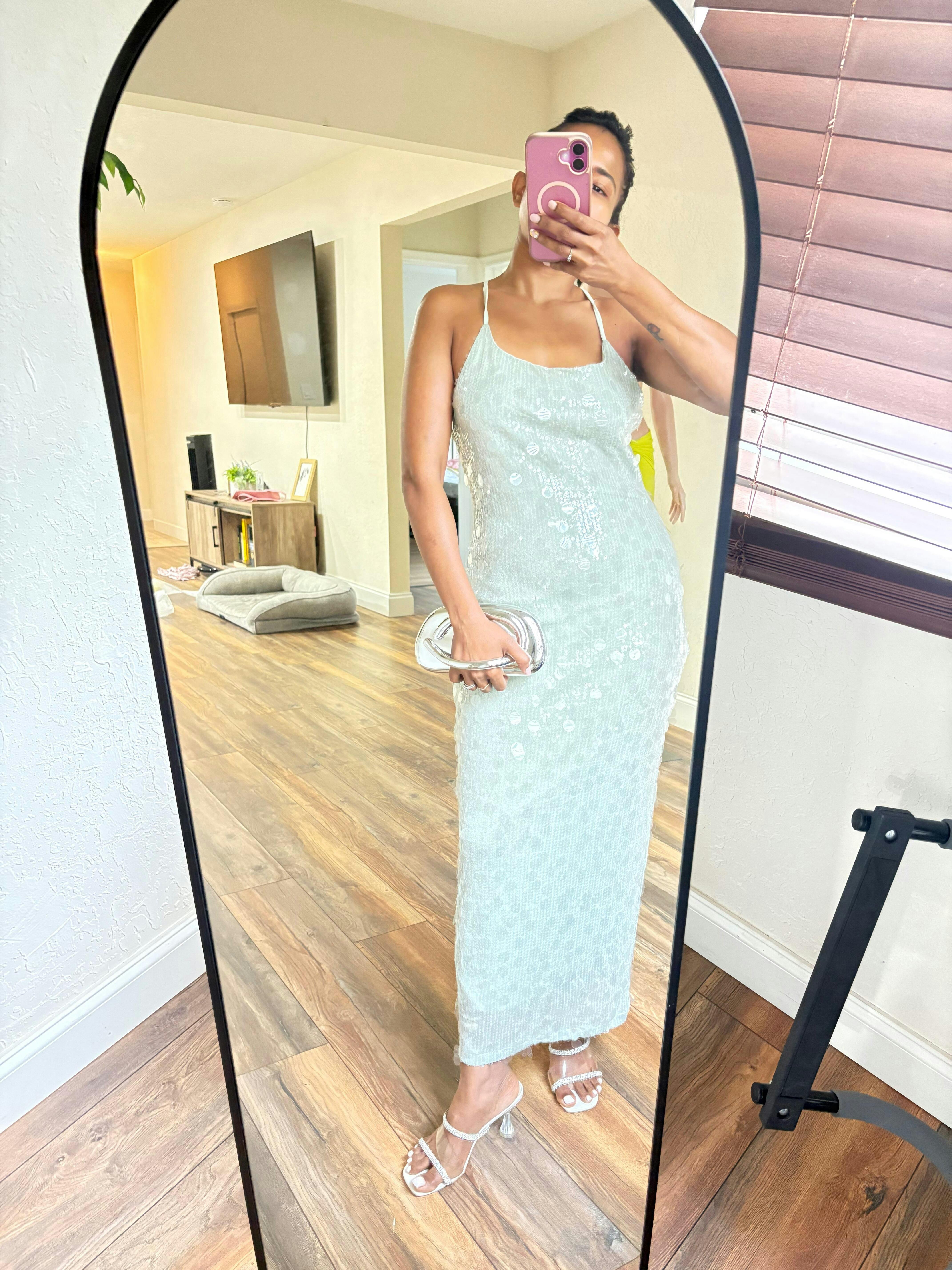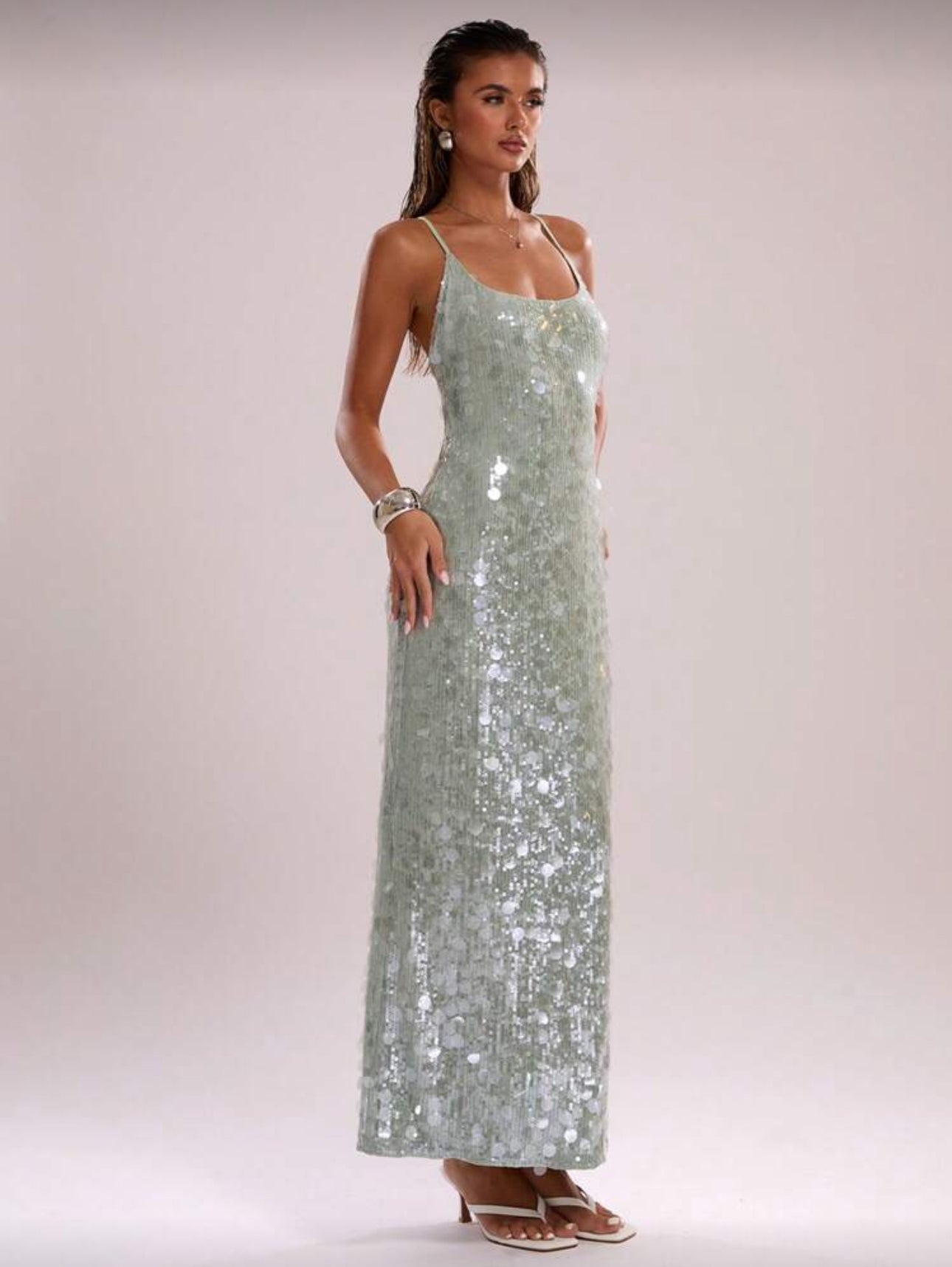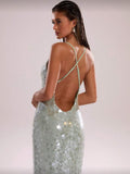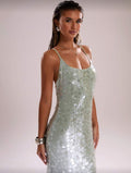 Turn every evening into a statement with this sleek emerald sequin slip dress. Designed with a minimalist square neckline and delicate spaghetti straps, it drapes elegantly into a figure-skimming silhouette that catches the light with every move. Perfect for rooftop soirées, candlelit dinners, or upscale events, this dress blends refined glamour with effortless sophistication. Pair it with strappy heels and a metallic clutch for an unforgettable night out.