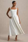 The Eternal Grace Dress captures the essence of timeless elegance. Designed with a structured bodice, wide straps, and a flowing A-line skirt, it flatters every silhouette with understated sophistication. Whether in classic black, soft sky blue, or pure ivory, this dress transitions effortlessly from day to evening — a true staple of modern femininity.