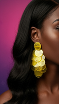 Designed to capture the glow of golden hour, the Golden Aura Earrings feature cascading translucent discs that shimmer with every movement. Crafted from high-shine resin in a rich amber hue, they reflect light like liquid sunshine — bold, radiant, and effortlessly chic.