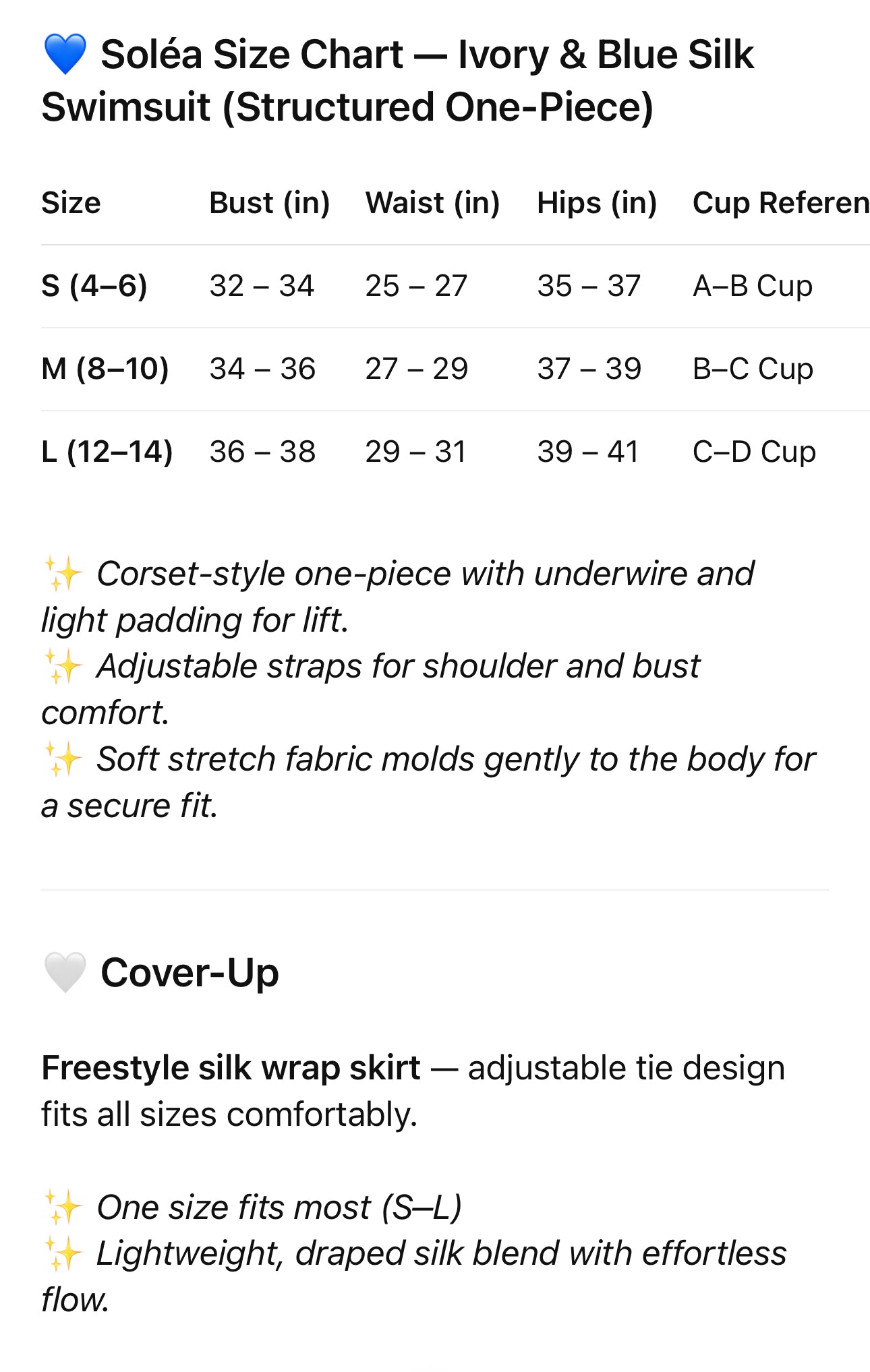 Step into timeless elegance with our Ivory & Blue Swimsuit with Silk Cover-Up.
