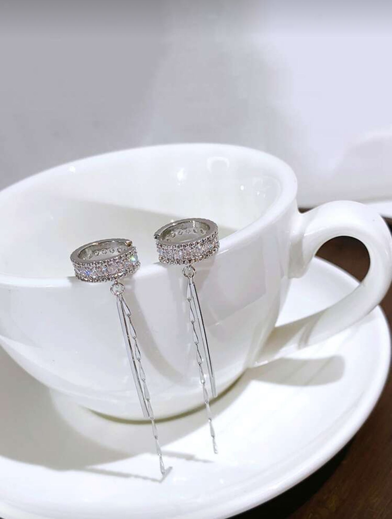 The Luna Drape Crystal Earrings capture the essence of refined glamour with a touch of modern edge. Featuring a sleek, crystal-encrusted hoop that flows into delicate silver chain drops, these earrings shimmer with every movement — effortlessly elongating the neck and adding radiant sophistication. Crafted from hypoallergenic materials for comfort and durability, they transition seamlessly from day to night, pairing perfectly with both sleek tailoring and evening elegance.