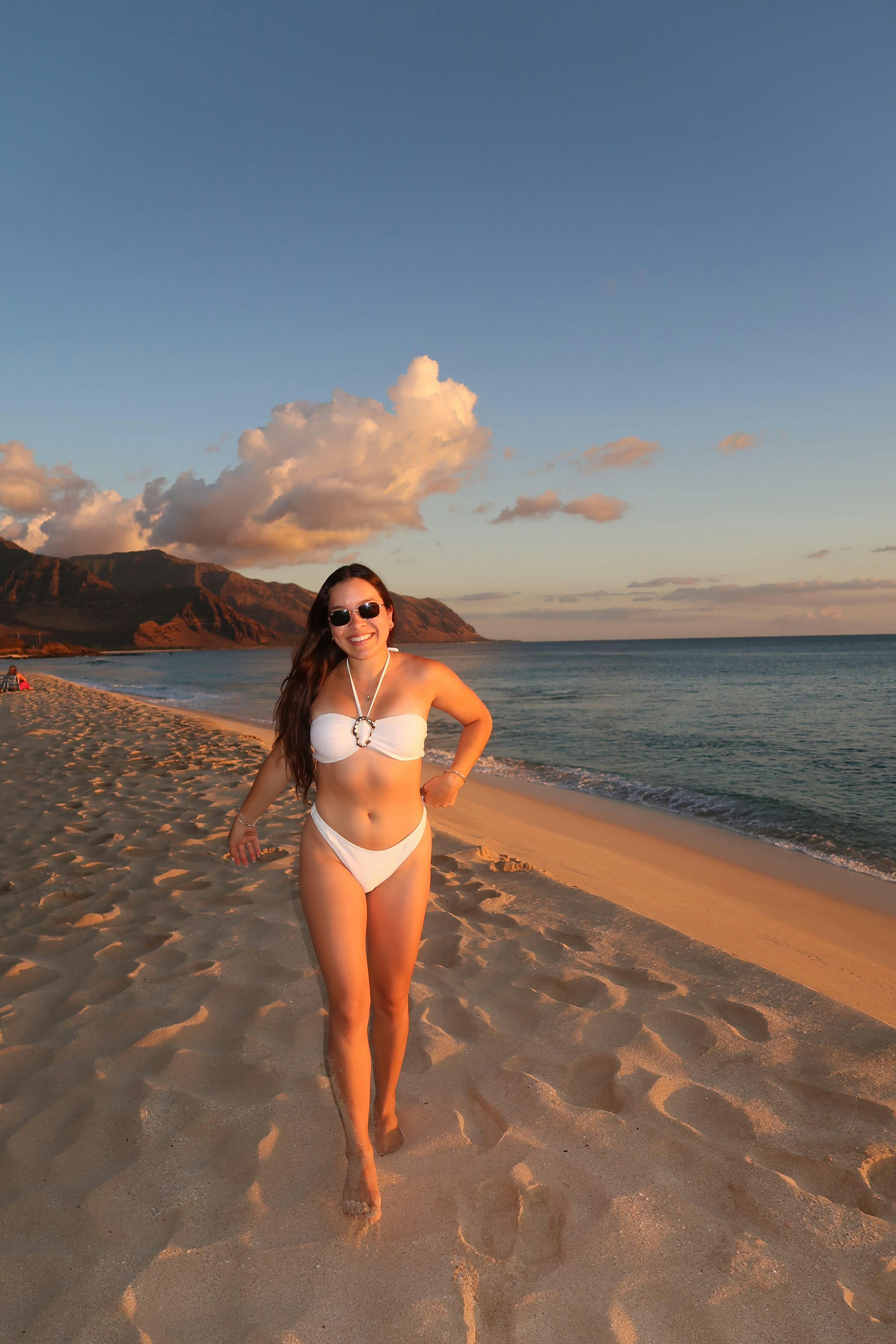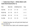 Striking and luxurious, this white bikini set redefines elegance with bold, sculptural details. The bandeau top and high-cut bottoms are accented with statement gold shell hardware, adding a touch of artistry that feels both timeless and unique. The matching wrap skirt completes the look, offering versatility from poolside lounging to sunset dinners.